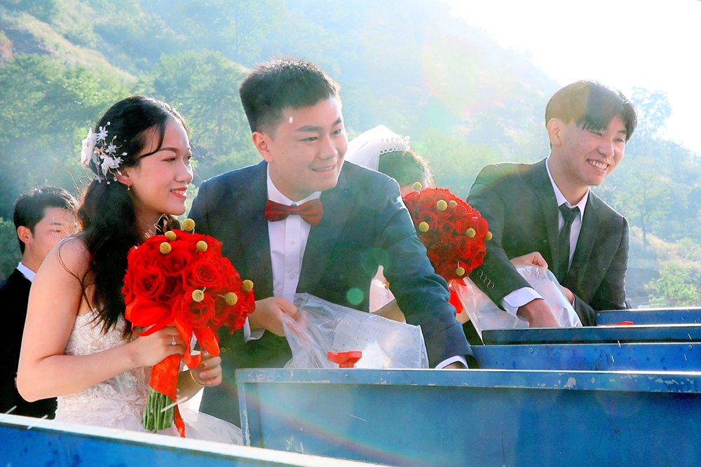 17對新人還一同前往觀音巖水電站營地植樹,栽樹、培土、澆水,現場熱鬧非凡。“今天,我們一起種下‘幸福樹’,希望我們共同成長、相互扶持、相互依偎、兩情繾綣。”來自芒里水電站的陳曉東、周穎夫婦攜手種下小樹苗,并許下美好的心愿。