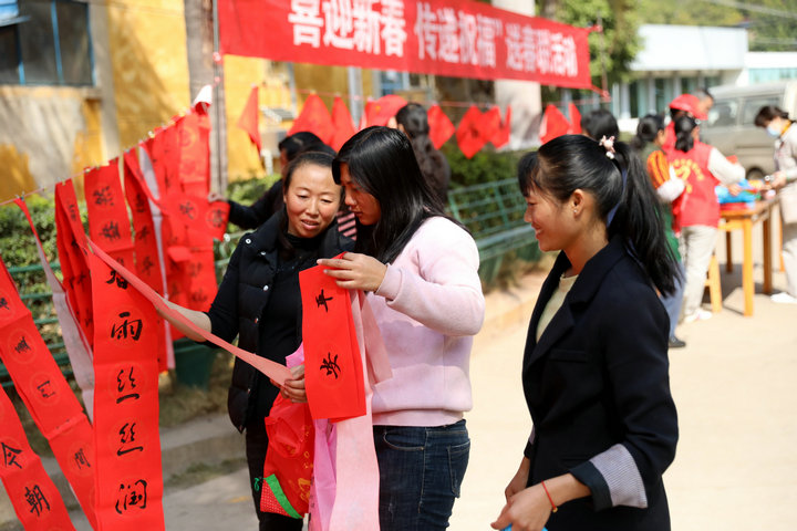 志愿者早早地將1000多幅春聯和福字掛上,“春風拂嶺千山翠,政策歸心萬世昌”、“春色明媚山河披錦繡,華夏騰飛祖國萬年輕”,一副副紅紅火火的春聯,一張張祈愿平安的“福”字,為即將到來的春節增添了濃濃的喜慶氛圍。不少職工和外來務工人員聞訊趕來領取春聯,喜悅之情溢于言表。“今年我們響應國家倡議,計劃就地過年。”老家在四川的吳女士拿著自己挑選的春聯,滿是感謝:“本來打算出去買春聯,增加點迎春氣氛,現在有了,也將福氣帶回家,感謝公司想得周到。”