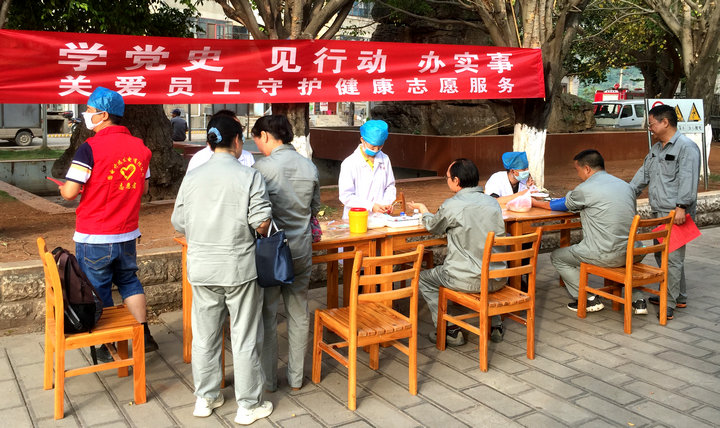 中國(guó)電力網(wǎng)訊 黨史學(xué)習(xí)教育開(kāi)展以來(lái),云南開(kāi)遠(yuǎn)公司設(shè)備檢修黨支部聚焦“我為群眾辦實(shí)事”實(shí)踐活動(dòng),5月10日上午,該支部醫(yī)務(wù)班醫(yī)護(hù)人員在食堂門(mén)口舉辦“關(guān)愛(ài)員工守護(hù)健康”志愿服務(wù)活動(dòng),用暖心服務(wù)提升員工幸福指數(shù)。