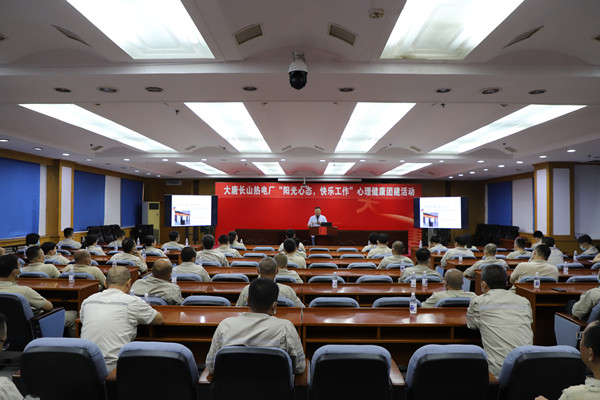中國電力網訊 為進一步加強職工心理健康知識普及,增強職工自我心理保健意識,養成正確的心理健康觀念, 大唐長山熱電廠工會于7月8日在綜合樓十四樓會議室組織開展了“陽光心態、快樂工作”心理健康團建活動。旨在通過活動培養企業良好的心理氛圍,提升職工對心理健康重要性的認識。廠紀委書記兼工會主席、2020年度勞動模范和各單位班組長70余人參加了團建活動。