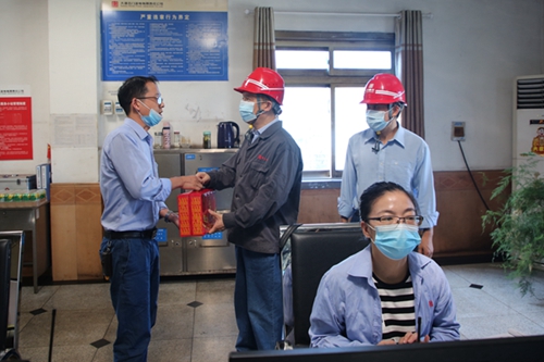 該公司黨委委員、副總經理、工會負責人雷小平一行先后來到燃運運行集控室、環保運行集控室、職工食堂、發電運行集控室以及控制、燃管、檢修等部門,為生產一線人員、后勤人員送去飲料、涼茶等慰問品。在各生產部門運行集控室,雷小平與生產一線人員握手交談,詢問了燃煤接卸、機組上煤、運行調整及人員值班等情況,對生產一線人員堅守在迎峰度夏第一線戰高溫、斗酷暑、保發電的奉獻精神表示肯定。他鼓勵各部門人員鼓足干勁,齊心協力做好迎峰度夏各項工作,助力企業切實履行好保電保民生的社會責任:燃運人員要直面當前四臺機組大負荷運行燃煤頂格消耗的壓力,做好來煤集中接卸以及機組上煤工作;集控、環保運行人員要把迎峰度夏各項安全發電措施做好做實做到位,確保四臺機組大負荷時期安全、環保發電;檢修人員要加強值班及時消除設備缺陷,確保不因設備問題影響機組帶負荷。在職工食堂,雷小平對后勤人員在當前疫情形勢下采取工作餐打包方式,竭盡全力滿足廣大員工早中晚就餐需求所付出的辛苦與努力表示感謝。他還叮囑大家做好防疫及防暑雙重措施,確保人員安全,全力維護企業安全穩定的良好局面。