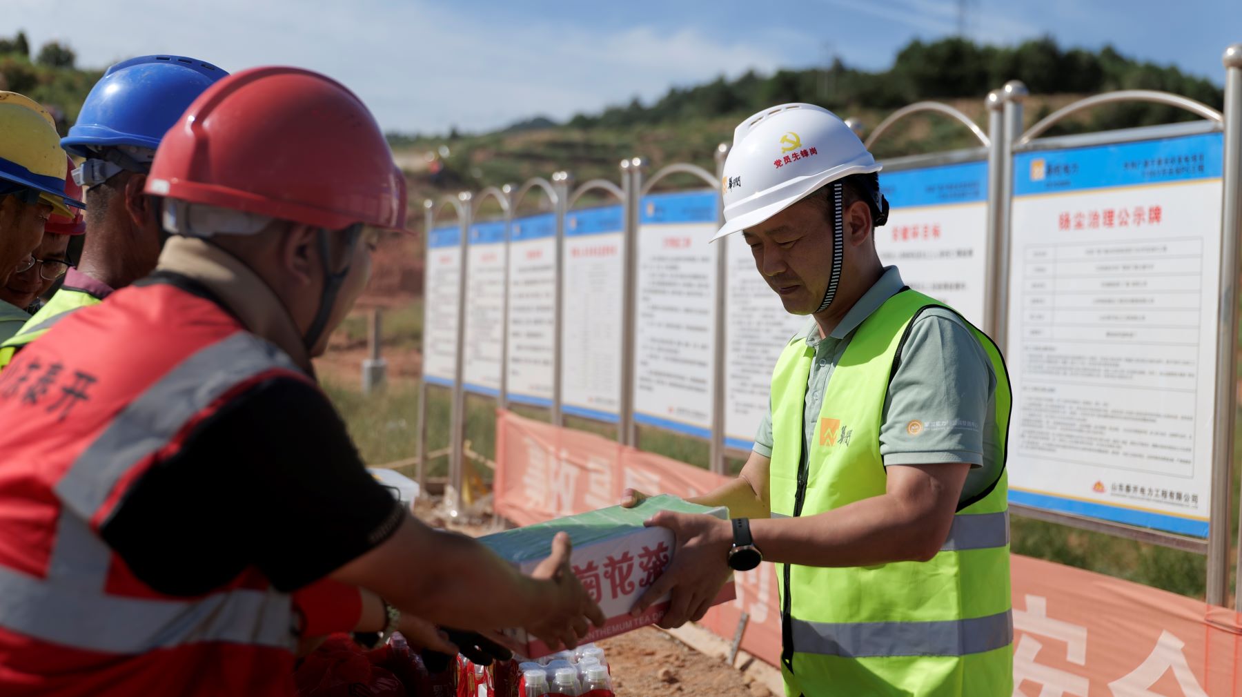 中國電力網(wǎng)訊(通訊員 鄧芳) 關(guān)心關(guān)愛高溫一線職工的身體健康和勞動(dòng)安全,7月17日,華潤電力江西公司黨組織書記帶領(lǐng)工會(huì)人員赴廣昌縣千善光伏項(xiàng)目,為正在開展升壓站和主體工程施工建設(shè)近百名員工送去清涼慰問,表達(dá)工會(huì)“娘家人”的關(guān)心與關(guān)懷。