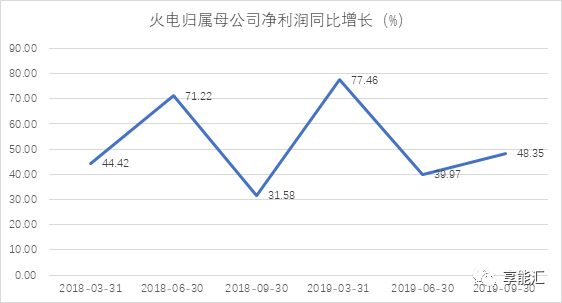 第三季度火電出力的明顯提升,火電單季度發電量增速由第二季度的0.8%,提升至第三季度的3.8%,使得火電行業營收整體上升。同時得益于煤炭價格的下降趨勢,火電行業第三季度成本增速降低,凈利潤增長較快。第三季度火電歸屬母公司凈利潤同比增長48.35%。