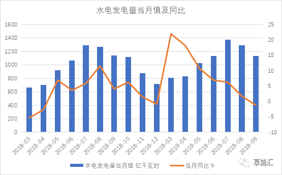 圖13:2018-2019年9月水電發電量及同比變化
