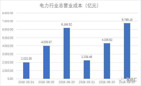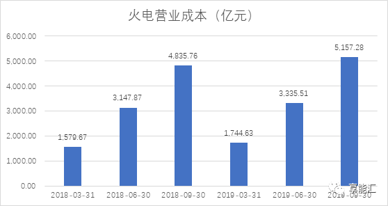 圖8:2018-2019年火電行業三季度營業成本