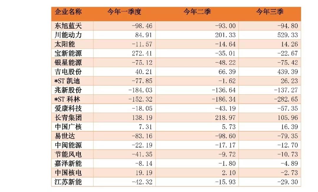 表2:新能源行業今年以來凈利潤同比變化(%)