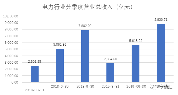 圖2:電力行業2018-2019年三季度營業收入情況
