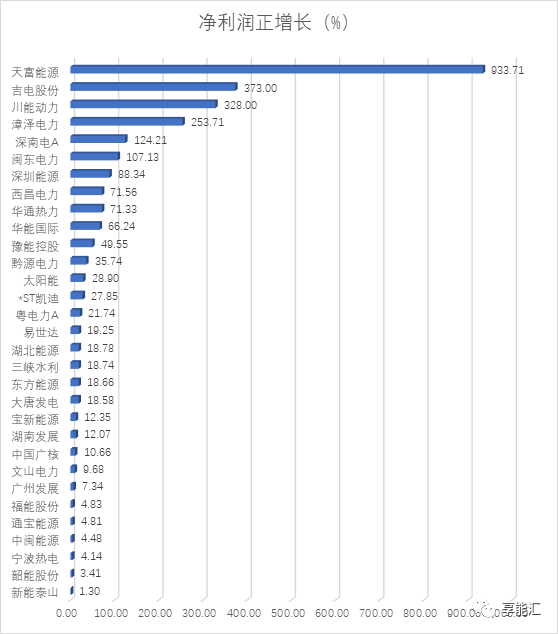 表1:火電行業主要企業凈利潤增長率