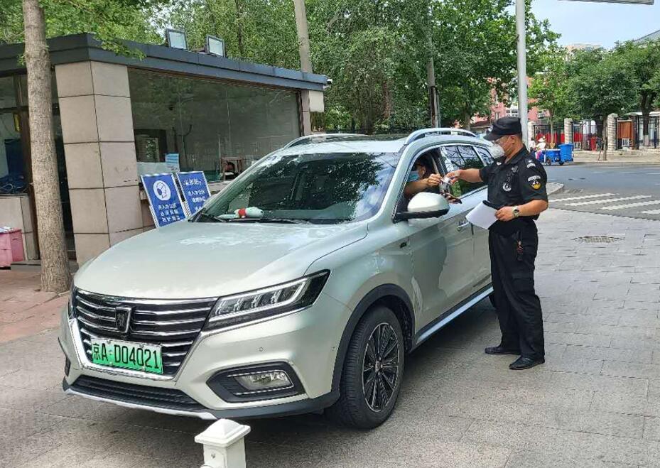 對(duì)進(jìn)入單位的人員及車輛進(jìn)行測溫及檢查健康二維碼 胡玉新攝