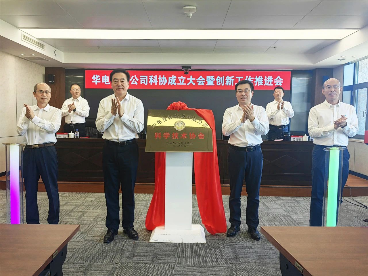 會議宣讀了省科協《關于同意成立華電吉林公司科學技術協會的批復》,陳耀輝、孫毅、韓宇鴻、鄭成杰共同為華電吉林公司科協揭牌。會議宣布了公司創新創效成果榮獲華電集團公司、中國電力行業獎項的表彰決定,公司為創新工作室命名并授牌。