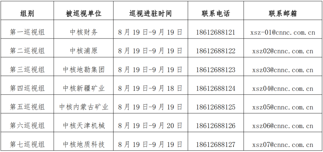 根據中核集團黨組巡視工作統一部署,8月19日,黨組第一至第七巡視組分別進駐中核財務有限責任公司、上海中核浦原有限公司、中核地質勘查集團有限公司、中核新疆礦業有限公司、中核內蒙古礦業有限公司、中核(天津)機械有限公司、中核地質科技有限公司等7家單位并召開巡視工作動員會。
