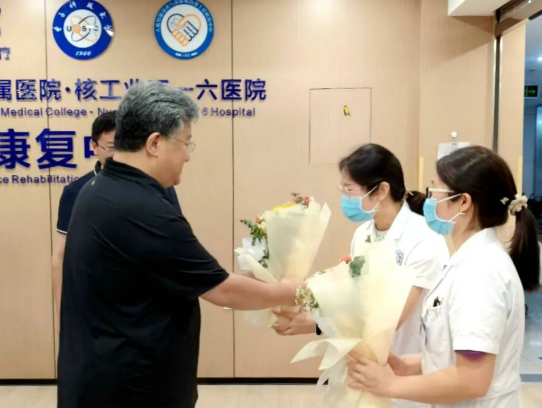 為深入學習貫徹黨的二十屆三中全會精神,進一步凝聚核醫療領域智慧力量,全力推動新時代背景下核特色醫療技術應用與高質量發展,不斷滿足人民群眾日益增長的健康需求,8月19日,時值中國第七個醫師節,中核集團黨組書記、董事長余劍鋒一行赴核工業四一六醫院看望慰問臨床一線的醫務工作者并致以節日的問候。