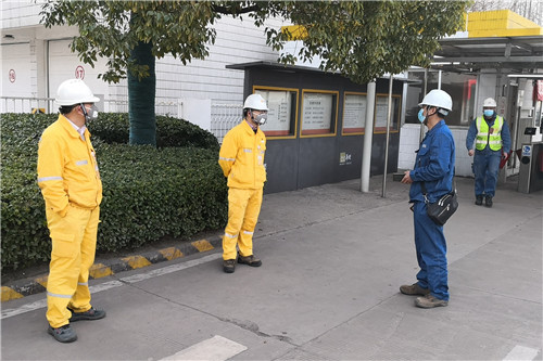 清晨7:00,檢查人員在綜合辦公樓一樓集合。陳超虎對此次監(jiān)督檢查方式、內(nèi)容、重點及分工進行了詳細(xì)布置。隨后,檢查人員分為兩組,對生產(chǎn)現(xiàn)場疫情防控措施執(zhí)行情況和人員進出公司疫情防控措施、人員到崗情況進行檢查。