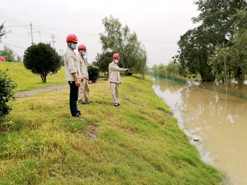 兩家項目部做好立足防大汛、搶大險、保發電的思想準備,成立防汛工作小組,嚴格落實防汛抗洪工作要求,劃分防汛責任區,明確崗位職責,自7月24日下午開始,防汛人員連日在淮河大壩防汛值班,巡查淮河大壩責任區段的堤壩,檢查廠區內脫硫設施防汛重點場所的防內澇措施落實情況,助力防汛抗洪保發電。