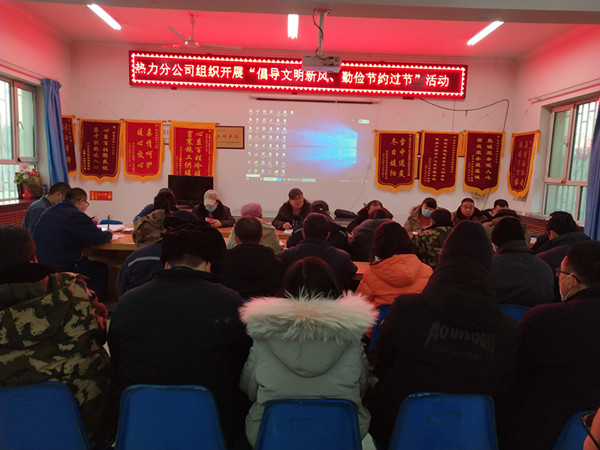 中國電力網訊 為貫徹落實習近平總書記關于厲行節約、反對浪費特別是制止餐飲浪費行為的重要指示精神。2月9日,新疆兵團一師電力阿拉爾熱力分公司組織開展“倡導文明新風、勤儉節約過節”活動。