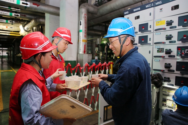 中國(guó)電力網(wǎng)訊 連續(xù)攀升的氣溫,讓石門(mén)提前入夏。4月28日,大唐石門(mén)發(fā)電公司團(tuán)委組織開(kāi)展"送清涼"為主題的“我為群眾辦實(shí)事”實(shí)踐活動(dòng),為奮戰(zhàn)在2號(hào)機(jī)檢修現(xiàn)場(chǎng)的員工送上綠豆沙,以實(shí)際行動(dòng)送關(guān)愛(ài)、鼓士氣,助力該公司機(jī)組檢修工作安全優(yōu)質(zhì)高效完成。