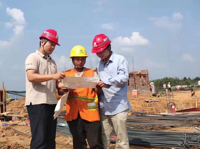赤日炎炎似火燒。10月1日,在舉國歡慶的日子里,熱鬧的石壩口50兆瓦漁光互補光伏項目現場,活躍著一群追“光”人,他們扎根在項目上,守護項目建設的安全、質量、進度。為了避開高溫時段,天剛蒙蒙亮,該公司新能源公司員工趙禹涵、劉宸佑就來到光伏升壓站施工現場,他們組織施工人員核對一天的項目任務,開展“三講一落實”,夯實施工安全基礎。