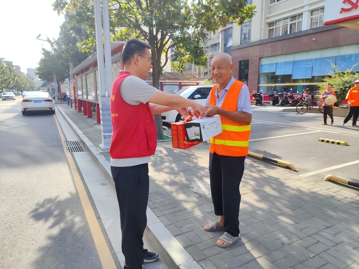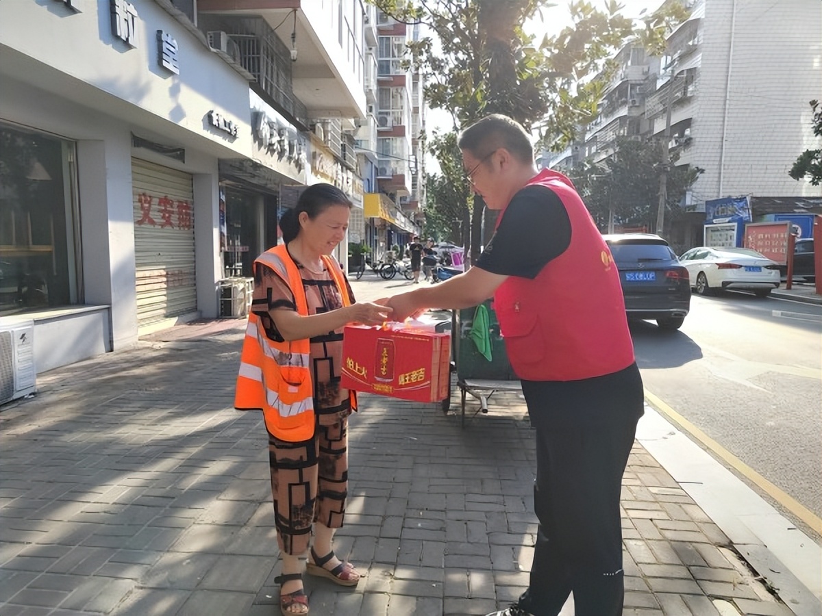 活動中,志愿者們首先對他們不畏高溫天氣,仍然堅守崗位工作、默默付出致以誠摯的敬意和感謝。隨后,將牛奶、涼茶、礦泉水等慰問物資送到一線環衛工作人員手中,同時囑咐大家要提高自保互保意識,做好防暑降溫措施,確保勞逸結合、身體康健。此次活動,讓堅守在烈日與高溫下的環衛工人們感受到夏日的絲絲清涼。