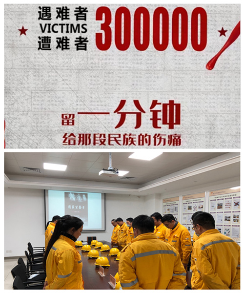2020年12月13日,是第七個南京大屠殺死難者國家公祭日。南京化學工業園熱電有限公司(以下簡稱公司)現場運行人員在班組安全活動開始前,為緬懷同胞,全體起立默哀一分鐘。