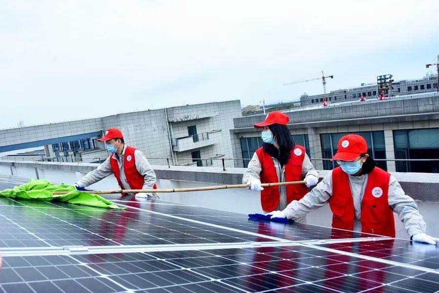 開展志愿服務,彰顯青年責任擔當。該公司團委常態化開展“烏篷船”志愿服務活動,開展了以“愛我紹電 共同戰疫”為主題的廠區內衛生大清掃服務活動;對光伏電板開展了“每月一次”義務大清掃的“風光行動”;在疫情防控期間,公司“烏篷船”志愿者化身“理發師”,為職工們義務理發,解決了“頭頂大事”;將“愛心暖柜”擺滿一排排礦泉水,供防疫志愿者、環衛工人、快遞人員等免費領取,讓“愛心傳遞”,送到快遞小哥、環衛工人、執勤安保人員等前來領取愛心物品的每一個人心中;開展“大唐啟明星活動”,為彩淳完小的孩子們定制了校服、購買文具用品,志愿者們將教育物資送到孩子們的手中,將企業的關愛與光明送進校園。