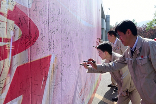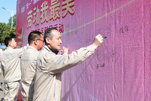 大家積極有序在簽名背板上鄭重簽下自己的姓名,踴躍與勞動模范交流合影,紛紛表示要以榜樣模范為標桿,立足崗位,力爭上游,把勞動熱情和創業激情傾力投入到企業高質量發展各項工作中,全力在“二次創業”新征程中建功立業。