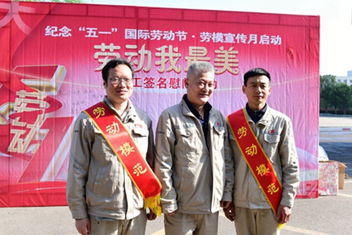 當天上午8時左右,精神飽滿、神采奕奕的干部職工陸續來到廠區大門,喜慶熱烈的“慶五一”紅色簽名背板讓大家眼前一亮,全國五一勞動獎章獲得者張浩、大唐安徽公司勞動模范馬力身披綬帶、現場展示讓大家倍感鼓舞,廠領導的親切慰問和勉勵關懷讓大家既驚喜不已又深感溫馨溫暖。
