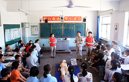 中國電力網訊 “青春心向黨、奮進新征程”。2021年6月是全國第20個安全生產宣教月,按照國務院安委辦關于安全咨詢“進企業、進農村、進社區、進學校、進家庭”五進活動要求,為了更好地把安全理念傳遞給企業周邊學校學生,6月18日下午,大唐臨汾熱電公司組織青年志愿者走進汾河學校“大唐班”開展主題團日活動,看望七年級、八年級“大唐班”學子,進行安全宣傳咨詢和心肺復蘇急救指導,提升孩子們的自我防護意識及自救能力。