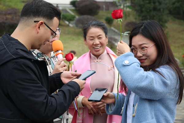 在大家的鼓勵和見證下,有不少青年勇敢地站上舞臺,展示自我,表達心意,為愛牽手,手持玫瑰向心儀的異性表達愛意,多位男女現場交換微信,互換聯系方式,愿意進一步深入了解。