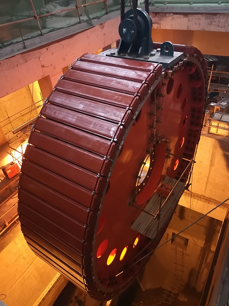 該轉子由東芝水電設備(杭州)有限公司制作,直徑為7680毫米,高度2012毫米,總重約190噸。
