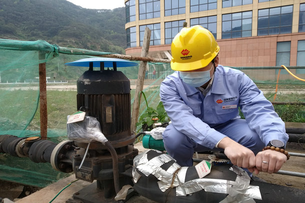 圖為運行人員執(zhí)行熱水系統(tǒng)安措