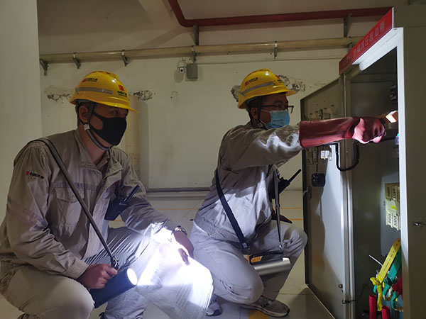 運行團(tuán)員青年進(jìn)行應(yīng)急排水泵電源檢查
