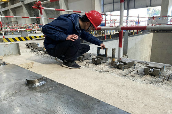 12:00,工程部值班人員到汽機房檢查設(shè)備安裝條件,校準低壓缸墊鐵水平度調(diào)整情況。