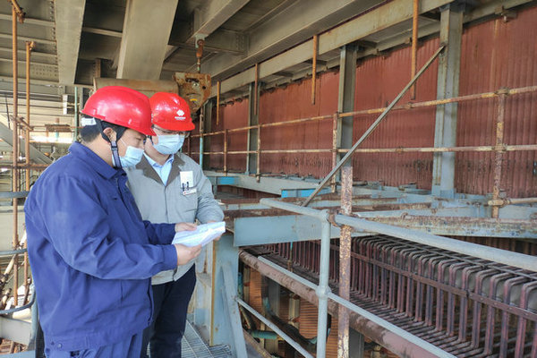 10:30,為保證現(xiàn)場設(shè)備具備復(fù)工條件,工程部值班人員全面深入現(xiàn)場,開展設(shè)備條件排查工作,鍋爐專業(yè)對#1鍋爐中間集箱手孔進行確認。