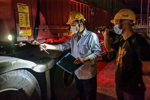 煤車入廠前,安保人員嚴把疫情防控關,嚴格檢查有效的核酸檢測報告等證明,全部正常后才一一放行。