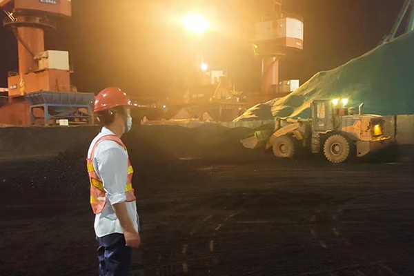在廈門港口,工作人員正在緊張有序地指揮煤炭裝車,以最快的速度從港口發車。