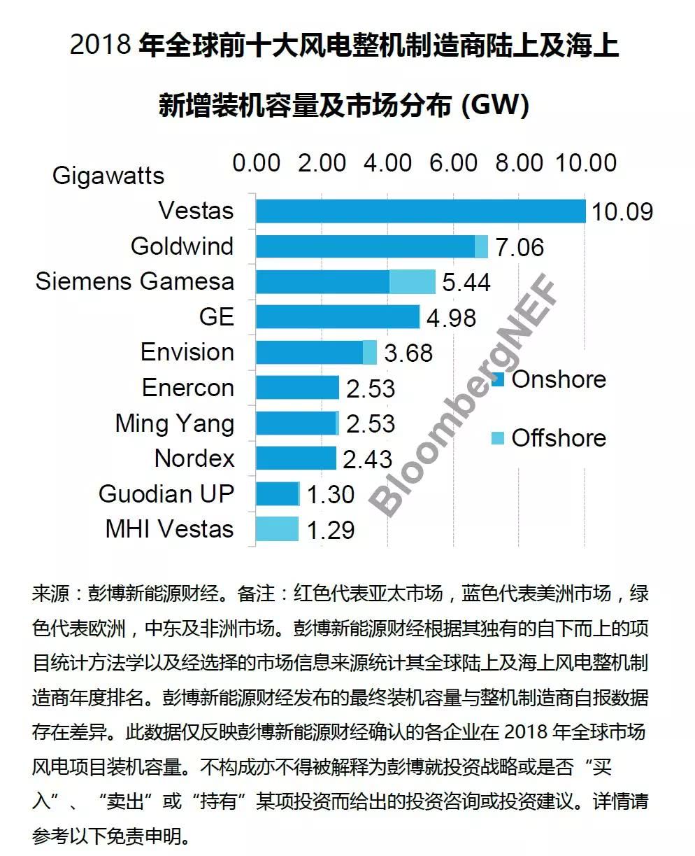 除此之外,Enercon(德國),明陽智慧能源,Nordex(德國),國電聯合動力及運達風電分列全球第六至第十大陸上風電整機制造商。