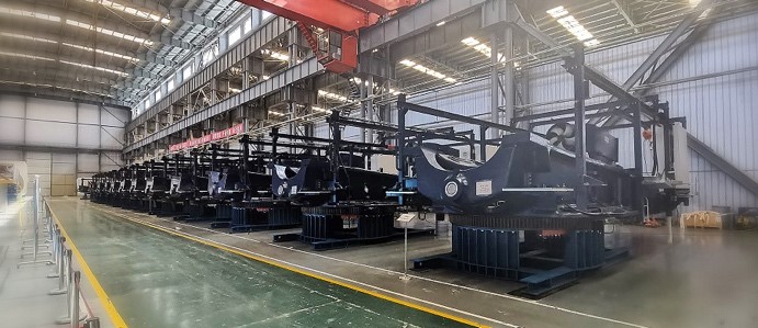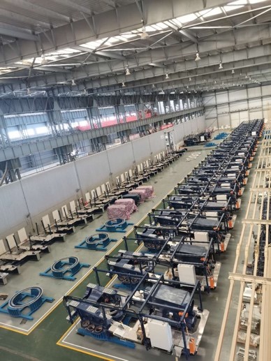 在大規(guī)模生產(chǎn)工作中,有效拓寬生產(chǎn)空間、采用精細(xì)化車間定置管理將極大提升生產(chǎn)效率。生產(chǎn)團(tuán)隊(duì)根據(jù)物資到貨情況及生產(chǎn)進(jìn)程,合理規(guī)劃空間布局,提高空間利用率的同時(shí)兼顧后續(xù)工序便利性。充分利用外場(chǎng)地及庫房空間,巧思布置,使得大批量存放半成品機(jī)組得以實(shí)現(xiàn)。整齊劃一的機(jī)組,形成了華銳風(fēng)電一道最美的風(fēng)景線。