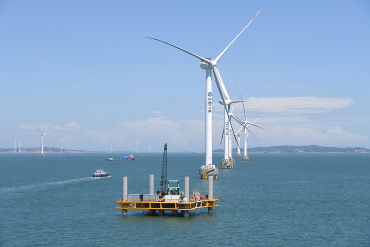 福建三峽海上風(fēng)電國際產(chǎn)業(yè)園一角(無人機(jī)照片)。新華社記者 林善傳 攝