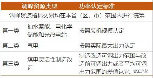 根據“1138號文”,被認可的調峰資源可以分為三類,每類的調峰能力(功率)的認定方式如下表所示。