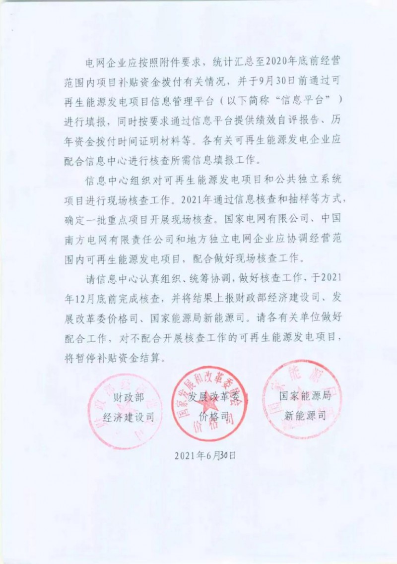 近日,財(cái)政部經(jīng)濟(jì)建設(shè)司、國(guó)家發(fā)改委價(jià)格司、國(guó)家能源局新能源司聯(lián)合印發(fā)《關(guān)于開(kāi)展可再生能源電價(jià)附加補(bǔ)助資金核查工作的通知》,委托國(guó)家可再生能源信息管理中心對(duì)可再生能源電價(jià)附加補(bǔ)助資金使用情況、涉及項(xiàng)目進(jìn)行核查。