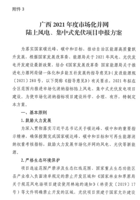 廣西壯族自治區(qū)發(fā)展和改革委員會關于申報2021年陸上風電、光伏發(fā)電項目的通知