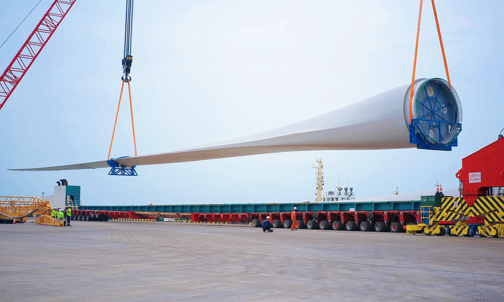 該葉片運輸難度極高,從工廠到港口的運輸路線如“障礙賽”,高壓線、橋梁、急彎層層阻隔,發(fā)運團隊提前半年實地勘測,多次復勘定制“分段式護送”方案。