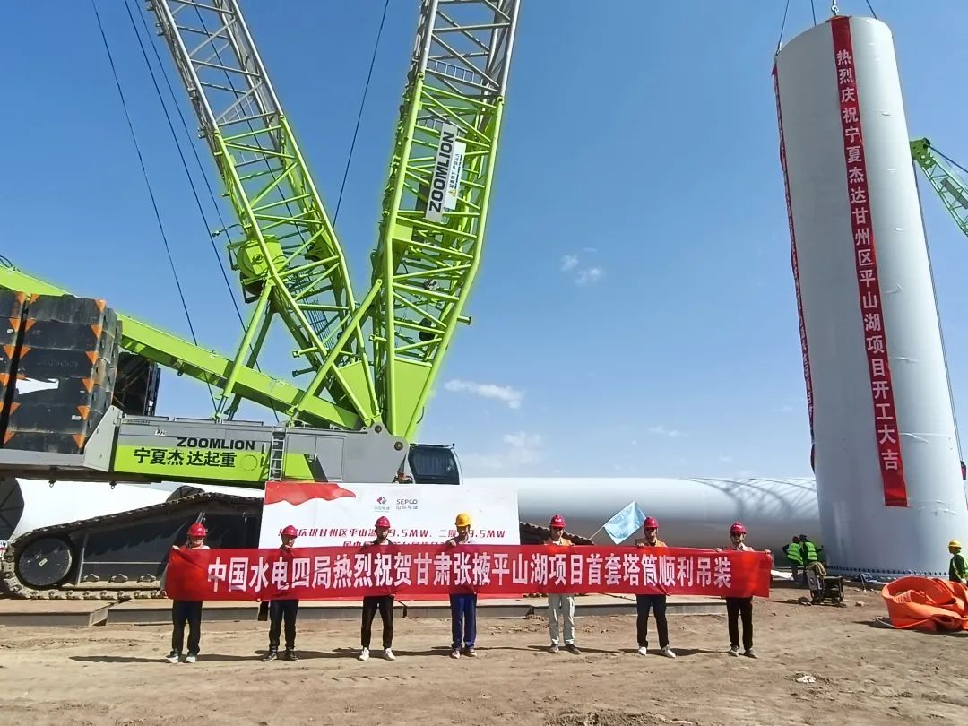 甘肅張掖平山湖項目首套塔筒順利完成吊裝