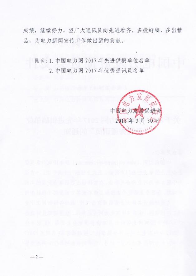 關于表彰“電力網2017年先進供稿單位和優秀通訊員”的通知.pdf