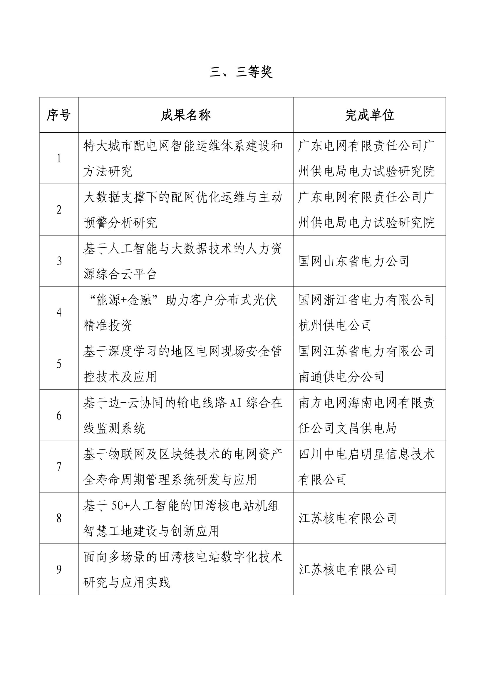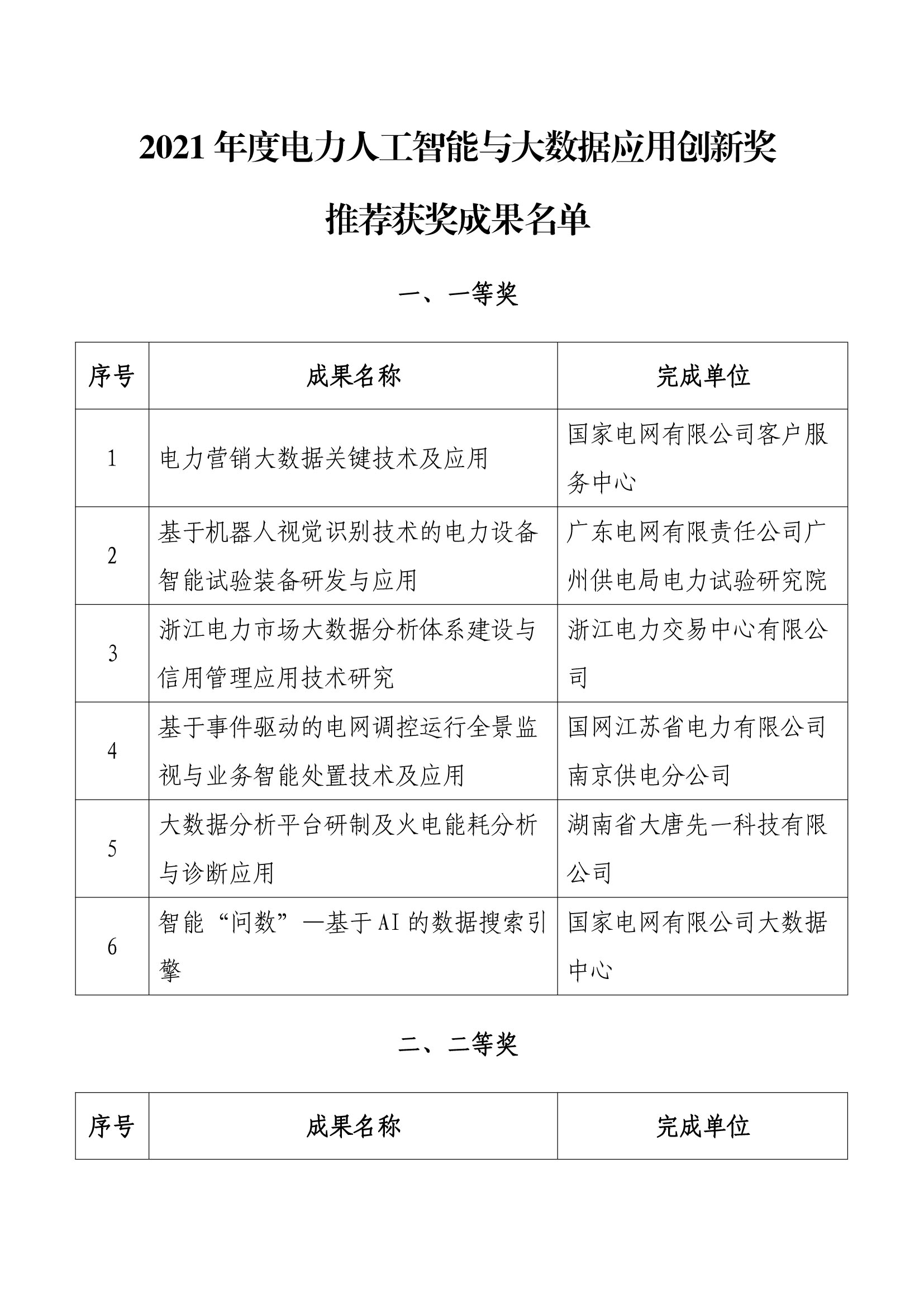 附件:2021年度電力人工智能與大數據創新應用成果獎獲獎名單