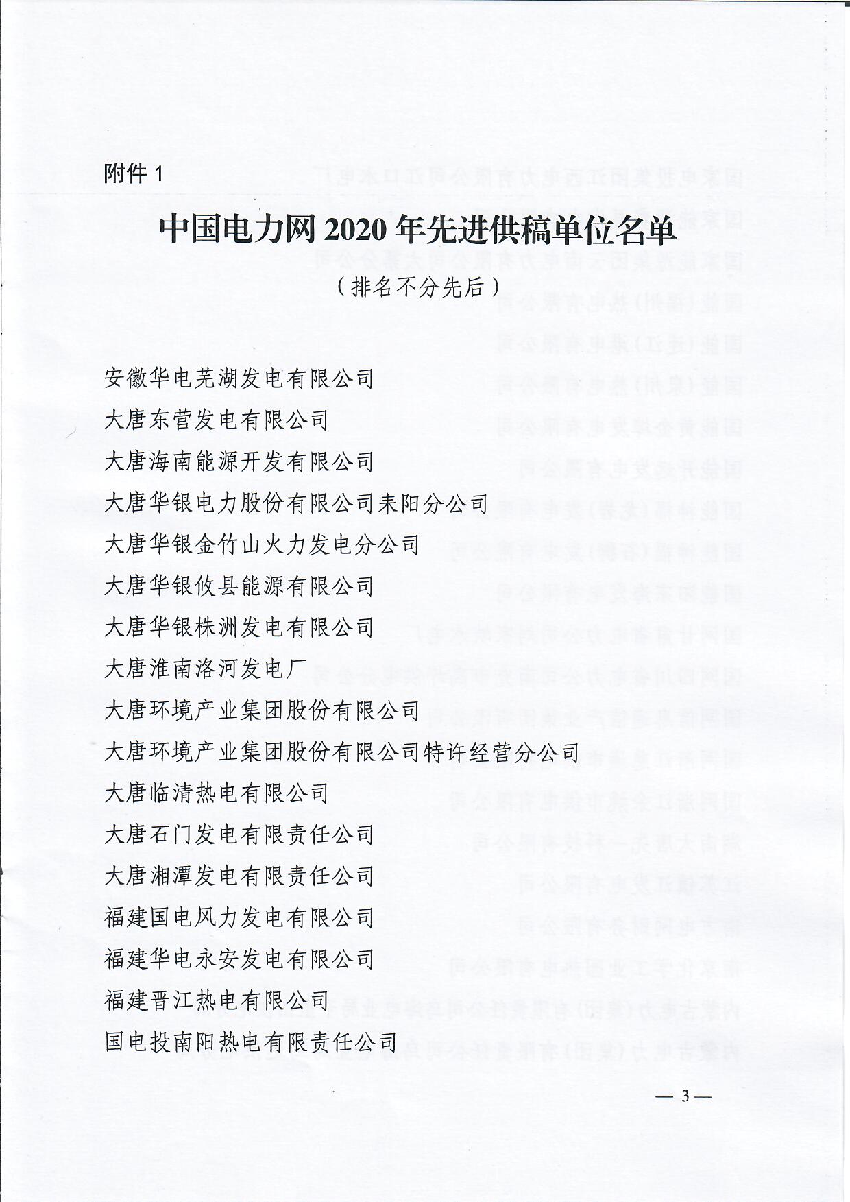 關于表彰中國電力網2020年度先進供稿單位、優秀通訊員的通知