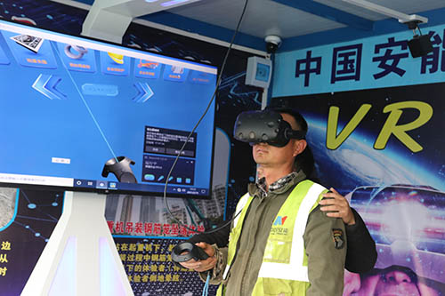 項目部還強化信息化建設,結合無人機航拍、人員旁站與遠程視頻連線,確保施工全過程監控無死角,及時糾偏現場作業人員的違章行為與機械設備的狀態異常。創新推出沉浸式體驗安全教育活動,借助工地安全體驗館及 VR虛擬安全體驗科技,使工友在現場及虛擬環境中實現規范失范操作狀態下利弊反差仿真體驗,并在體驗后提醒工友如何防范事故,已累計開展各類安全培訓32場次,引導工人自主學習安全知識、提高安全意識。在材料加工場區、現場施工面設置班前講評臺,要求施工隊伍每日組織開展班前教育,明確當日安全風險以及應對措施,降低事故發生風險。