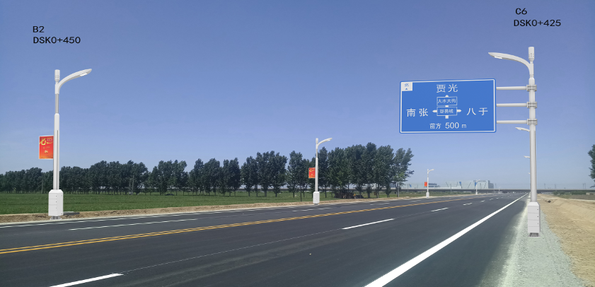 今年在雄安容(容城)易(易縣)線投入應用,搭載了通信基站、視頻監控、氣象監測、公關WLAN、信號燈、高清卡口等設施。