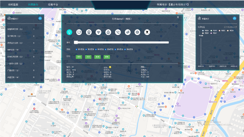 平臺化管理,三大功能本領強自主研發的智慧路燈物聯應用管理平臺,可成功接入LED照明、LED顯示屏、監控攝像頭、行為監測儀、環境監測器、井蓋監測器、垃圾監測器、一鍵報警器、WIFI等九類智能設備,實現集中化的用能數據采集、狀態信息查詢、遠程開關控制、業務指令發布、設備信息維護、異常情況預警等系統管理,極大提升管理者的管理效率。