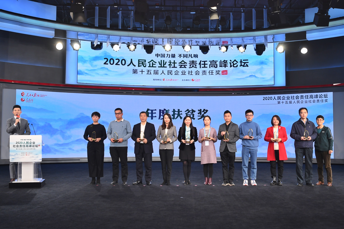 12月12日,由人民日報社指導,人民網主辦的“2020人民企業社會責任高峰論壇暨第十五屆人民企業社會責任獎”在北京正式揭曉,本次以“中國力量 不同凡響”為主題,旨在表彰那些在逆境中勇于挑戰,在挑戰中積極變革,在發展中不忘踐行社會責任的企業和機構。國網信息通信股份有限公司(以下簡稱國網信通股份)憑借在助力脫貧攻堅中充分展現企業的社會責任與擔當的突出表現,獲評“年度扶貧獎”。